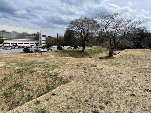 椎木門跡を抜けると、いよいよ佐倉城の代名詞、角馬出かくうまだしの空堀が見えました。