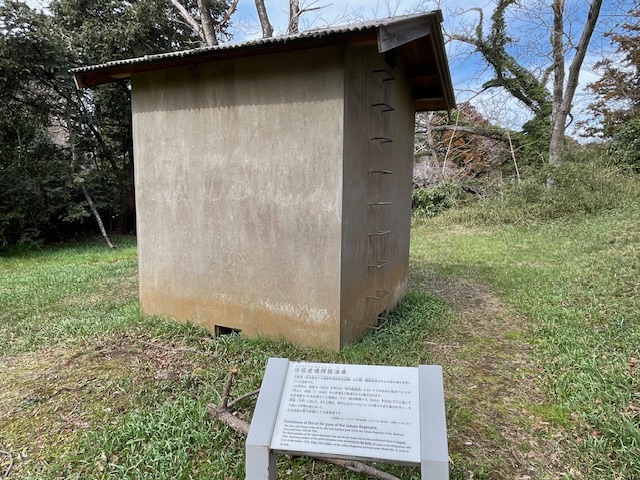 陸軍が、銃の手入れをするときの油を保管していた倉庫です。あまりパッとしない建物ですが、佐倉連隊の戦争遺構として貴重なものだそうです。
