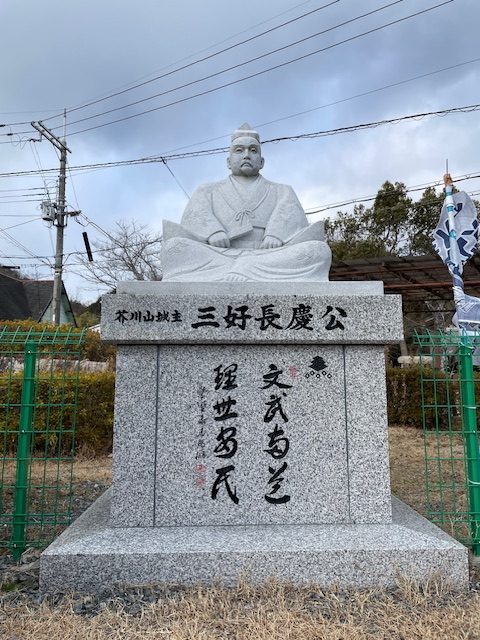 摂津峡公園内には、三好長慶公像がありました。