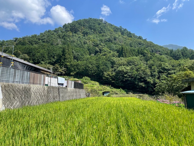 積翠寺から歩いて登山口を目指します。道中からは、要害山を遠望することができました。