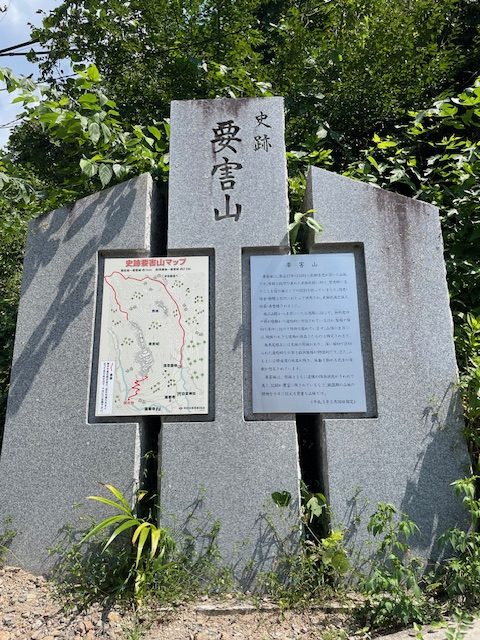 人気の無い閑散とした場所だったので、この石碑を見つけて安心しました。石碑には、親切な説明と案内板があります。それでは、登城していきます。