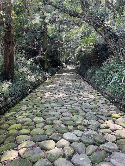 旧東海道金谷坂石畳と呼ばれるこの道は、江戸時代後期に村民によって整備された峠道で、1991年に復元されたそうです。傾斜のある坂が続くため少し足に堪えましたが、風情があって歴史を感じました。